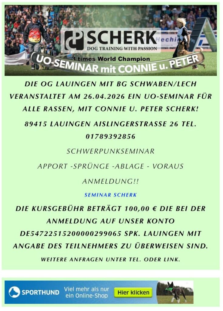 08:00 Uhr FÄHRTEN / Unterordnung / Schau / ZTP Training