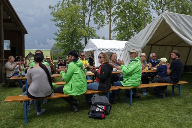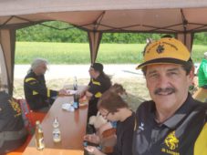 Das Wetter war ein richtig tolles Wanderwetter. Nicht zu heiß und durch den Wind kamen wir nicht so sehr in’s schwitzen. Auch den Hunden machte die Wanderung sichtlich Spaß. Auf halber Strecke war ein Brotzeitstopp wo man sich stärken konnte. Dann ging es weiter. Nach etwa 5 Kilometer kamen wir alle in der Ortsgruppe an. Dort gab es reichlich an Mittagessen, Getränke, Kuchen, Kaffee und noch vieles mehr.